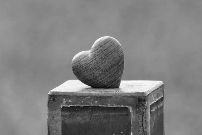 Am Grab steht eine Schale mit kleinen Holzherzen bereit, die von den Trauernden als Beigabe mit ins Grab gegeben werden können.